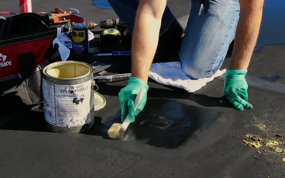 When applying the primer, ensure that it extends past all edges of where the patch is to be applied. This will ensure that all leading edges of the EPDM patch are properly adhered to the roof membrane.