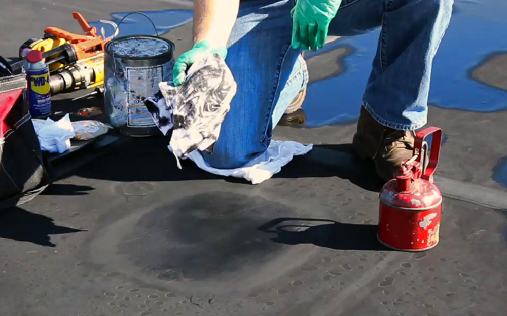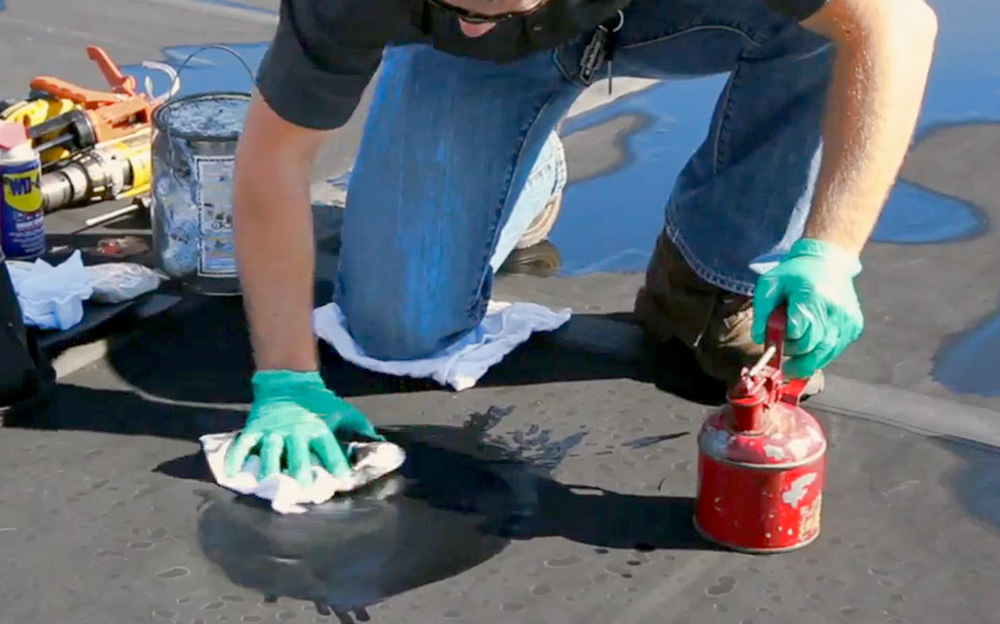 It is important that the dirt, oxidation and carbon black are removed from the surface of the roof. If they are allowed to remain, any new patch or adhesive used for the patch will stick to the film on the roof surface and not to the membrane causing the patch to be compromised. Cleaning the roof surface properly will allow the patch to adhere directly to the membrane, improving its long-term performance.